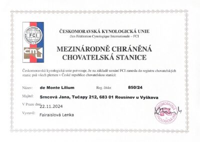 Jsme oficiálním držitelem osvědčení o chovatelské stanici.